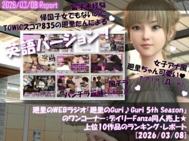 Libido-Labo 【▲20】英語★廻里の自撮りWEBラジオ『廻里のGuriGuri(グリグリ)5thシーズン』のワンコーナー:デイリーFanza同人売上★上位10作品のランキング・レポート[2026/03/08]